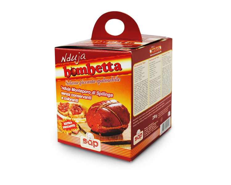 Bombetta Tags: branding Portfolio Two Logo & PackagingRealizzazione logo e packaging per "Bombetta - Nduja extra piccante" .Progetto100%Categoria Sviluppo BrandCliente Salumificio F.lli Pugliese s.n.c.PeriodoMarzo, 2014Skills Photoshop, Illustrator, IndesignShareVai al prodotto Indietro